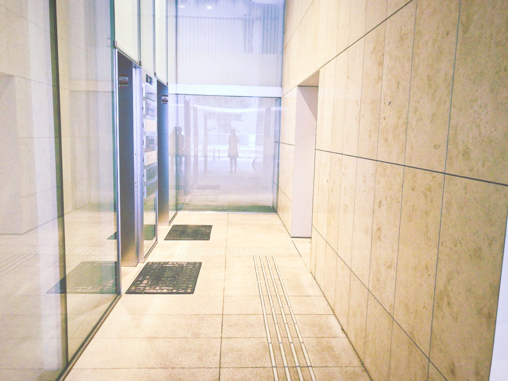 エレベーターの扉が開くと、正面に下駄箱があるで靴をしまいます。